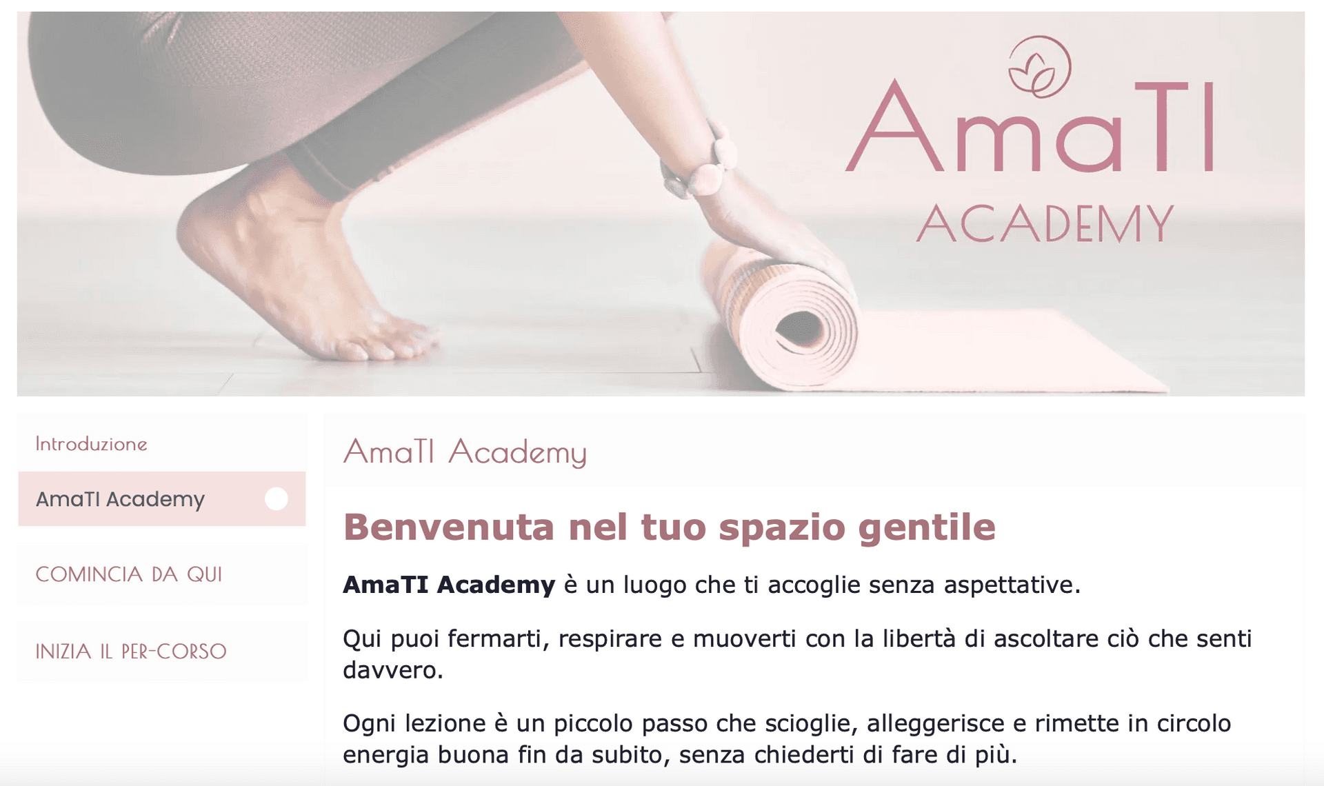 All’interno di AmaTI Academy troverai un percorso curato in ogni dettaglio, pensato per accompagnarti nel riscoprire il piacere del movimento e la serenità di sentirti bene, dentro e fuori.